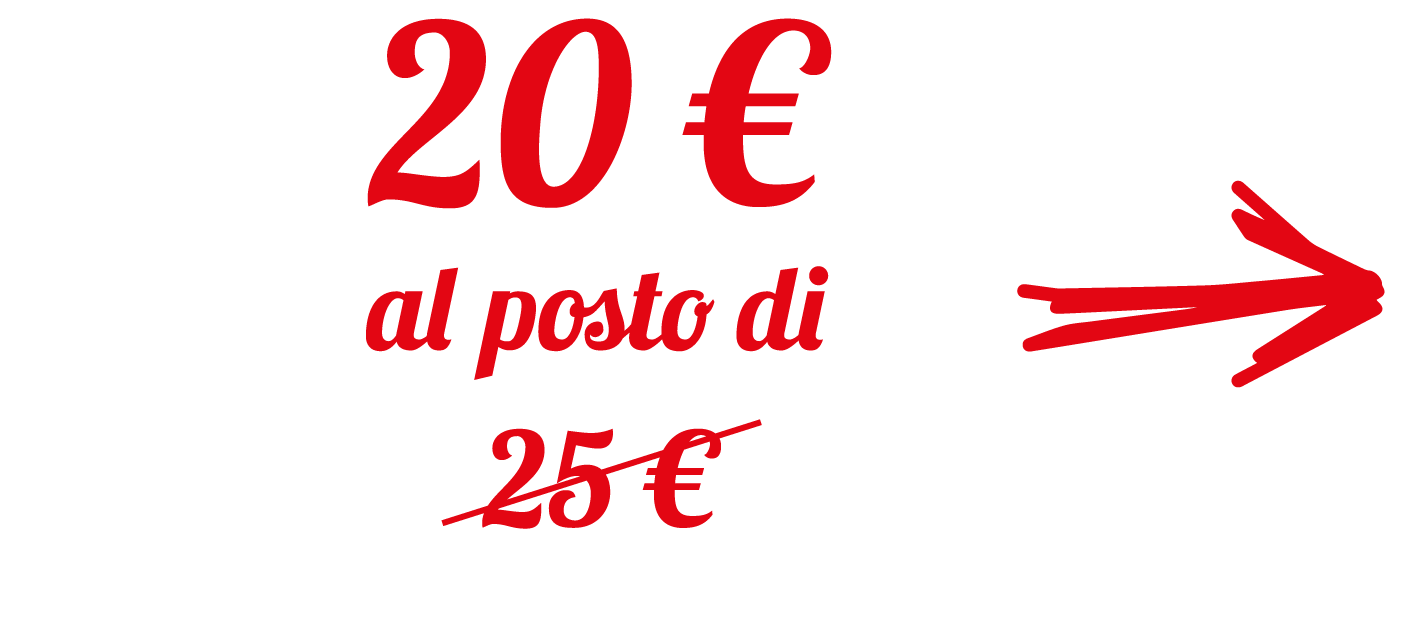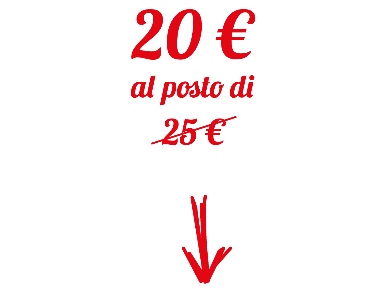 Ma solo prenotando tramite il nostro form avrai uno sconto di € 5 sul prezzo a persona della cena, quindi il costo sarà di € 20 a persona e non più di € 25!
